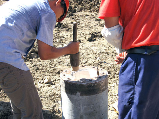 本方法適用檢測混凝土樁的樁身完整性,判定樁身缺陷的程度的位置,基本程序利用標準小錘敲擊成樁端面,通過預先埋設傳感器來測定數據,此方法簡單明了,是一種經常使用的方法。